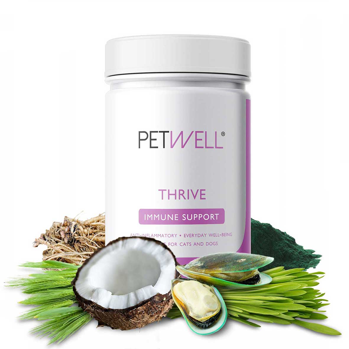 THRIVE is a blend of probiotics, prebiotics and coconut milk to strengthen their immune system and promote good gut health. Boosted with green lipped mussel with Omega 3 fats for healthy skin, joints, cognitive function. The perfect boost for immune health.